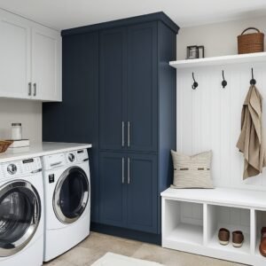 For families, the laundry-mudroom combination is perhaps the most practical room in the entire house — and when it is designed thoughtfully, it is also one of the most satisfying. The key is creating clear zones within the space so that each function has its place and neither one feels compromised. The laundry zone gets the machines, a folding counter, and storage for supplies. The mudroom zone gets built-in bench seating with storage cubbies below, hooks above for coats and bags, and a durable floor material that can handle muddy boots and wet umbrellas. When these two zones are aligned and designed with the same palette and materials, the result is a room that genuinely supports the rhythms of everyday family life.