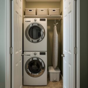 A laundry closet does not have to look like an afterthought. With the right planning, even the smallest space can feel curated and intentional. The trick is to treat it like a room within a room — every inch matters, and every choice should serve both form and function. Start by painting the interior of the closet a soft, unexpected color like sage green, dusty blue, or warm terracotta. It sounds bold, but color inside a closet creates a sense of depth and makes the space feel designed rather than just carved out of necessity. Sliding barn doors or bifold doors with frosted glass panels allow you to close it off beautifully when not in use.