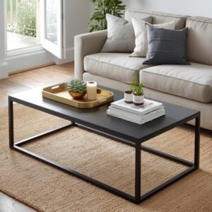 If you have ever felt overwhelmed trying to style a glass coffee table, a tray is your best starting point. Trays do something clever — they create a visual boundary that organizes objects without making the surface feel crowded. Choose a matte travertine or brushed brass tray and place it slightly off-center on the table. This deliberate asymmetry actually feels more polished than perfect symmetry. Inside the tray, keep things simple: a short pillar candle, a tiny sculptural object, and a small bud vase. Three items, maximum. The glass table beneath lets light travel through, so your tray becomes a kind of floating installation rather than just a surface arrangement.