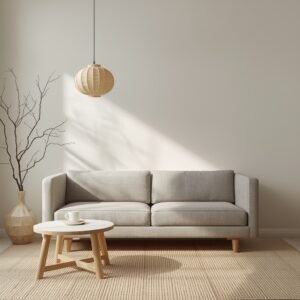 Japandi is not a passing trend — it is a design philosophy that feels genuinely relevant for modern minimalist living. It blends the warmth and functionality of Scandinavian design with the meditative calm and craft of Japanese interiors. The result is a space that feels both lived-in and serene. To achieve it, start with very low furniture: a low-slung sofa in natural linen or light grey, a floor-level coffee table, and perhaps a tatami-inspired mat or natural grass rug. The palette stays muted — warm whites, soft greys, and dusty greens or sage. Nothing shouts. Everything has been chosen with a kind of quiet consideration that you can feel when you walk into the room.
