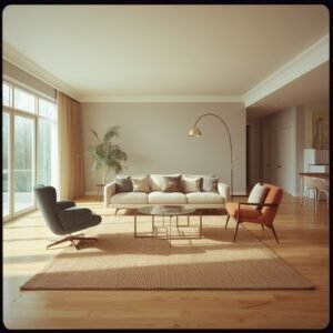 Every strong minimalist living room starts with a neutral foundation that does the heavy lifting quietly. Think warm whites, soft greiges, and barely-there taupes spread across walls, floors, and large furniture pieces. These are not cold or sterile tones — when layered correctly, they create a room that feels like a slow exhale. Start with a linen or cotton sofa in oatmeal or ivory as your anchor piece. From there, let the floor do the talking: a wide-plank light oak or polished concrete surface grounds everything without demanding attention. The trick is to resist adding too much too soon. Build slowly, because in minimalism, restraint is the most powerful tool you have.