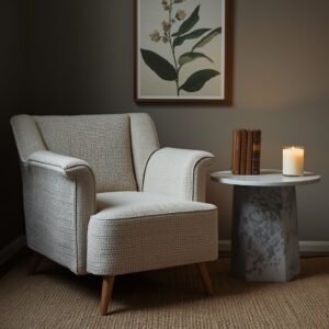 The styling of the nook is where you can have real fun. A boucle accent chair in cream or soft blush feels luxurious without taking up much floor space. Drape a textured throw over the armrest. Stack a few of your favorite books on the side table beside a small plant or candle. Add a small woven rug beneath the chair to anchor the vignette and delineate it from the rest of the room. If the corner has a window, position the chair to face it so natural light falls over your shoulder while reading. Even in a bedroom that measures ten by ten feet, a well-styled reading corner adds a layer of personality that no amount of general bedroom furniture can replicate.